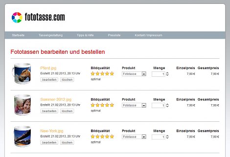 Ohne sich umständlich anmelden zu müssen, kann der Benutzer schnell und einfach Tassen gestalten und bestellen. Zahlung ist per Rechnung oder Sofortüberweisung möglich. Über eine spezielle API wird die Bestellung in das System von photo-druck.de eingespeist.